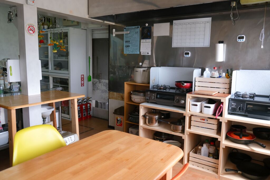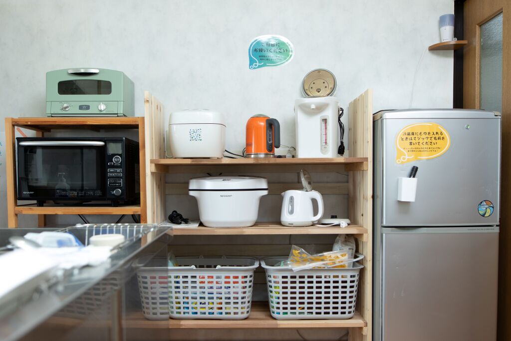 | キッチン | 冷蔵庫、各種調味料、ケトル、ガス台、電子レンジ、トースター、炊飯器、調理器具、食器、鍋、フライパン、土鍋 |